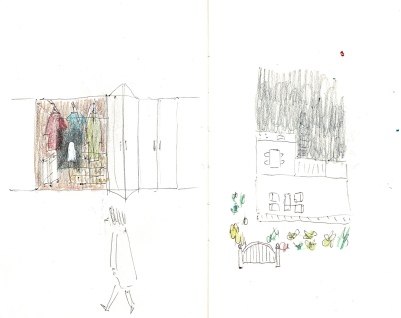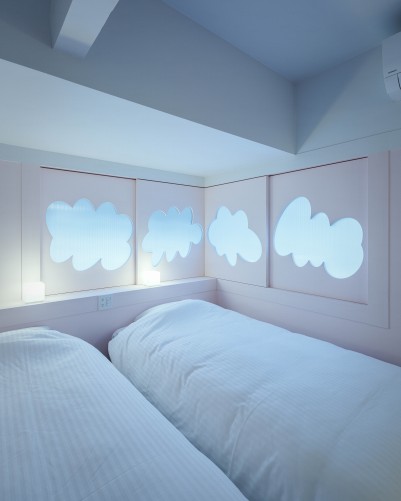 MARIE/ 2024/ Hinui,Shimane,Japan/ Renovation to inn/ Curtain:Yuki Tsutsumi/ Constructor:Inoshita Kenchiku Co., Ltd./ Photo:Yu Suzuki/Drawing: Ryosuke Yuasa